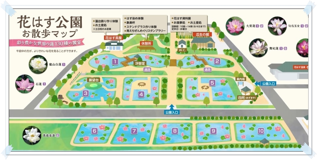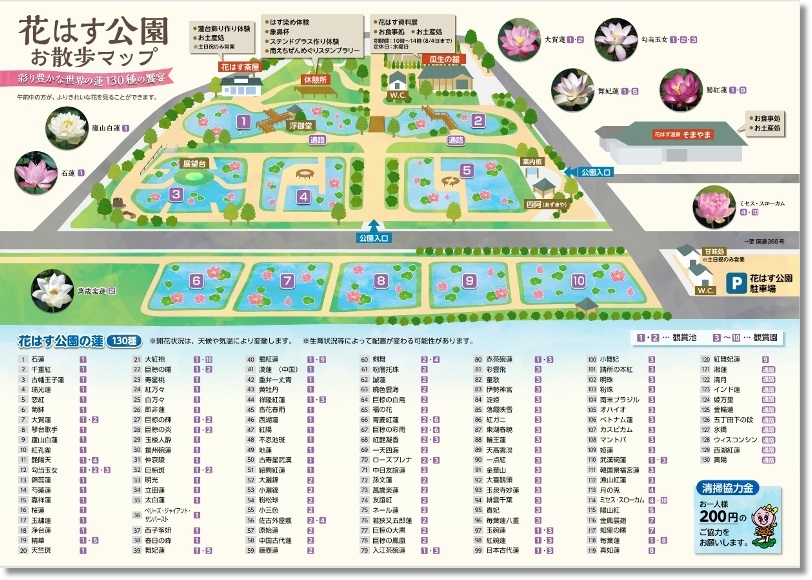 中の面は公園に植えられているたくさんの品種と場所が印刷されています