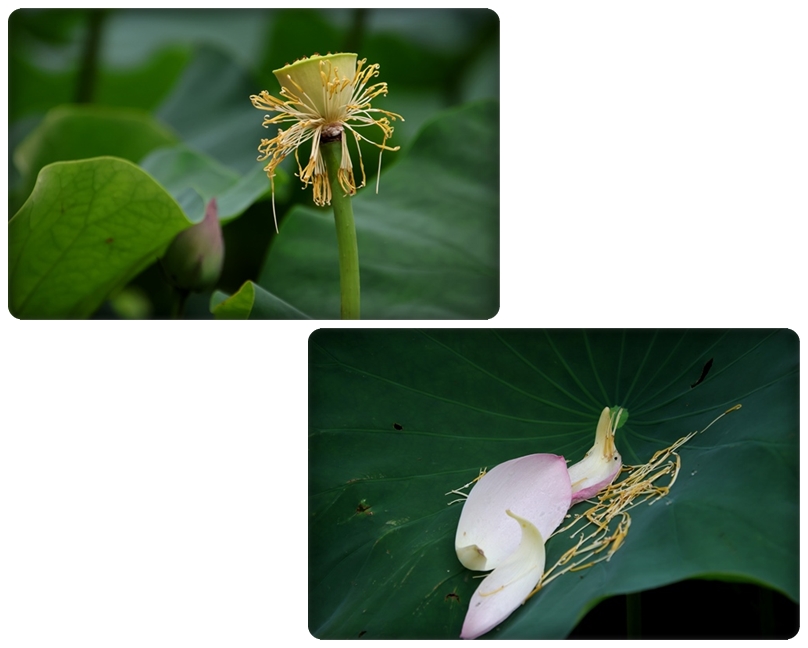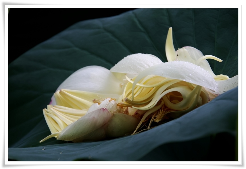散ったばかりの様子の花びらや蕊を葉っぱの上に・・・・・・・