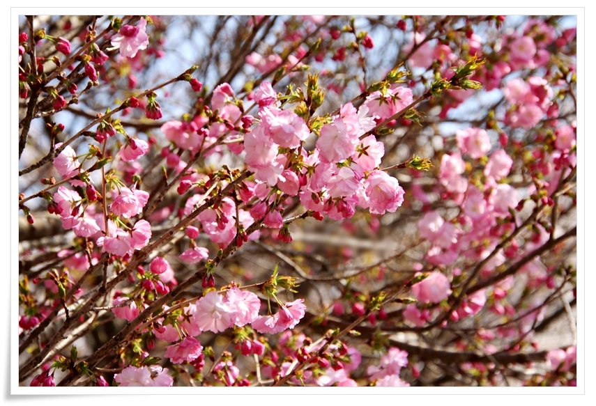 動橋川の対岸に植えられているのは 八重桜 です