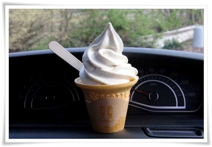 帰りに 白山比メ神社 の表参道に有るお店で蕎麦ソフトクリームを食べて帰りました