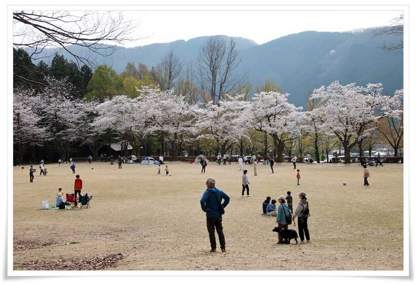 ソメイヨシノ に囲まれた芝生広場だけど、芝生はまだ枯草色なのがちょっと残念かな