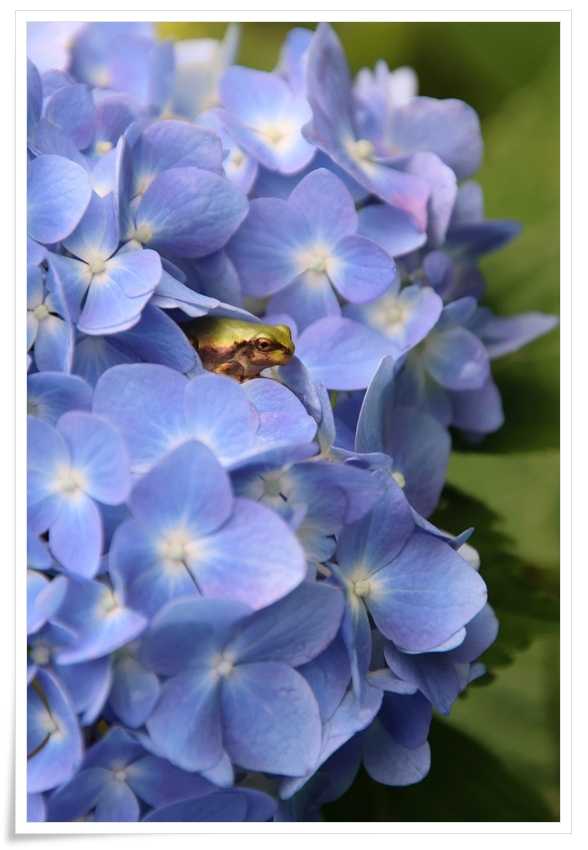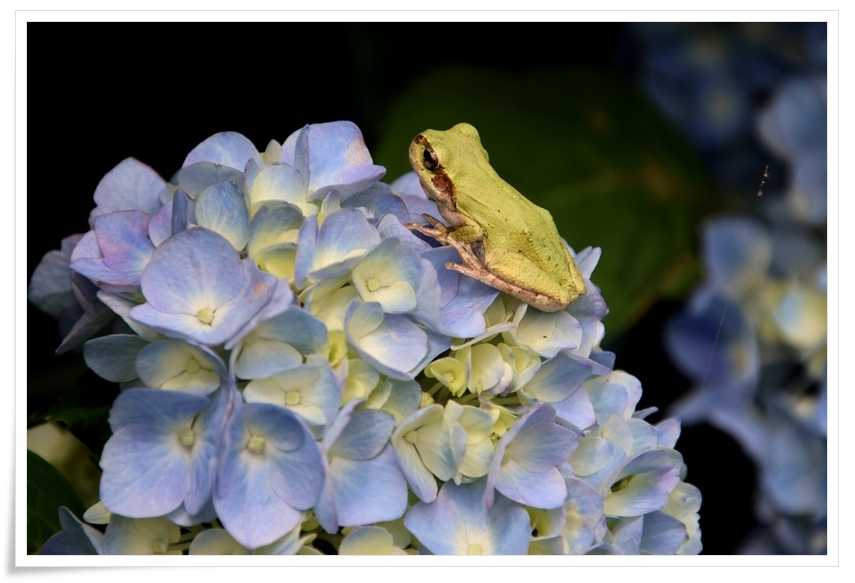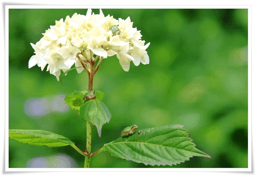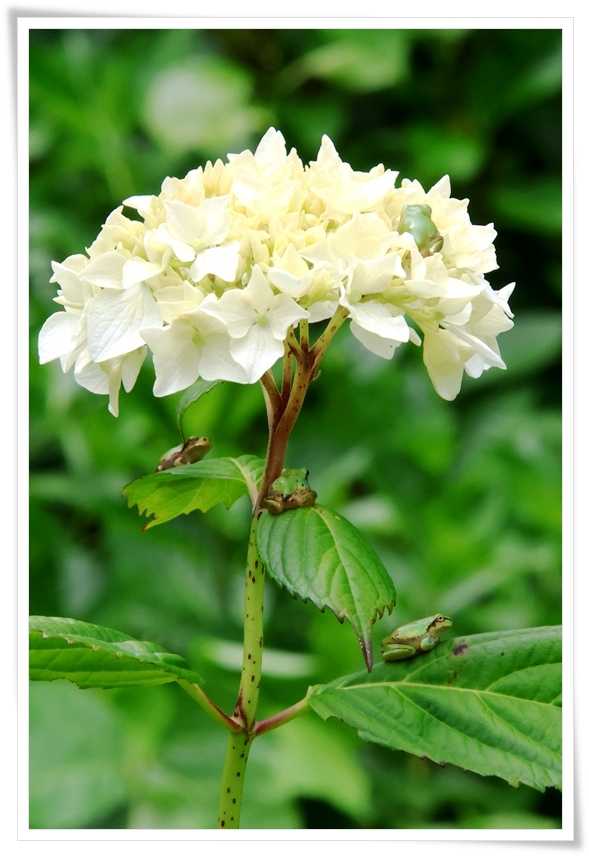 こちらのアジサイの周りにはアマガエルが4匹も集まっていました