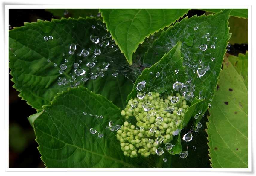 葉っぱのところにクモの巣が有るのでこんな様子を見る事が出来ます