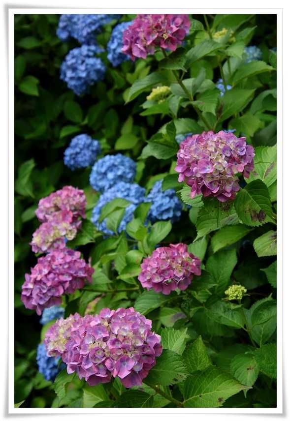 一番たくさん植えられているのは青色系のアジサイだけど、一部にはこっちの色合いも・・・・・