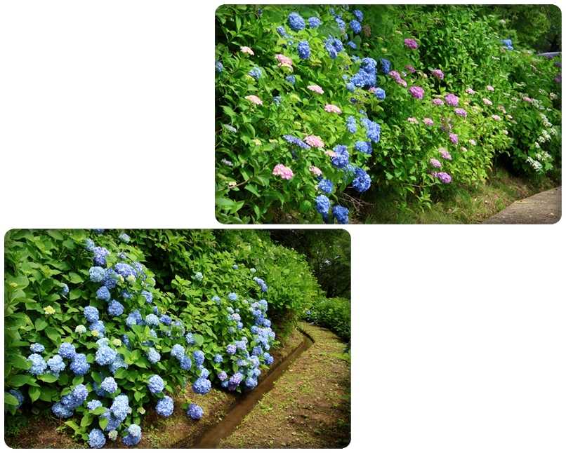 に車を停めて、まずは道路沿いに植えられたアジサイを見て歩きます