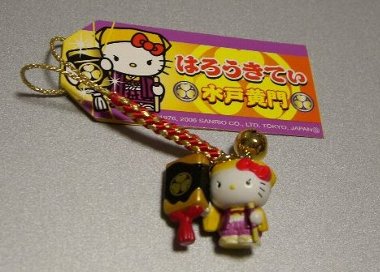 ご当地キティの根付「水戸黄門Big印籠キティ」水戸黄門バージョンはいろいろ種類があるみたい。大きな印籠、どうやって持ち歩いてるんだろう。怒ってるキティもかわいいですね。 はろうきてぃ水戸黄門根付けストラップゴールド