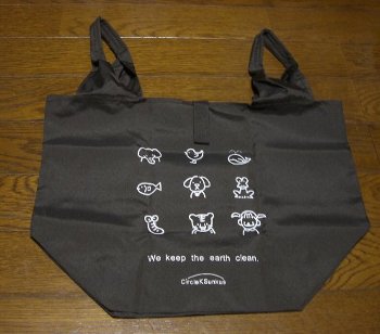 サークルKサンクスで買い物をすると「マイバック」がもらえました。サークルKサンクスのユニフォームから作ったそうです。希望者のみなので、自分から下さいと言わないといけません。始まってから1週間になるので、先にあるかどうか確認してから買い物をしました。もう無いかもって思ってたのでゲットできてよかった。ポスターが貼ってあるだけなので、知らない人多そうですね。
