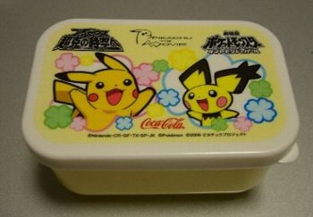 コカコーラ製品の1.5L、2LPETに「ポケモンミニおかずケース」が付いてました。1種類だけですが、パッケージにわざわざ1種類って書いてあり親切だと思いました。書いてないと、全部確認しちゃいそうだからね。おかずケースだけど、小物入れにするつもりです。