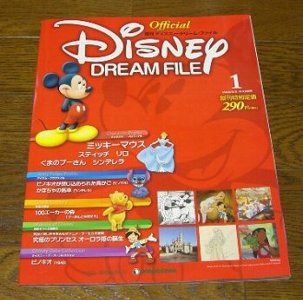 ディアゴスティーニの「週刊ディズニー・ドリーム・ファイル」創刊号。創刊特別定価で「特製バインダー」付です。こういうものの創刊号はいつも半額ぐらいの値段ですよね。そのうえこれにはバインダーが付いてお得です。キャラクターやアイテム、舞台などの情報がのっていて読み応えあります。でも毎号1冊まるごと、キャラクターや作品ごとにスポットをあてるんだったらよかったのに。そしたら好きな作品の時だけ購入するのにな。まぁ、今は「週刊My Disneyland」を定期購読しているので、両方購読する余裕ないけどね。でも、チェックしておもしろそうな時は買おうかな。