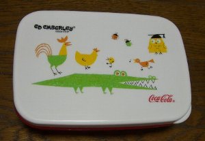 コカコーラ製品の500mlPETを4本を購入すると「エド・エンバリー ハッピーランチグッズ」がもらえました。「ランチボックス」「ペットボトルホルダー」「レジャーシート」の全3種類。「ランチボックス」を選びました。お弁当を持っていくことはないので、小物入れに使うつもりでね。エド・エンバリーって知らなかったんだけど、アメリカの絵本作家なんですね。 ★エド・エンバリーグッズ★