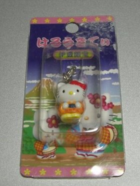 ご当地キティのファスナーマスコット「伊豆限定 伊豆の踊り子キティ」川端康成の名作ですね。見えないけど太鼓を背負ってるみたい。
