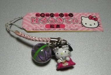 ご当地キティの根付「長野限定 松本城バージョン」お城じゃなくて、お姫様キティですね。手毬もついてるけど、有名なのかな。