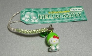 ご当地キティの根付「小豆島限定 オリーブキティ」これはファスナーマスコットも持ってます。キティちゃんは、緑のかぶりものとスカートも似合いますね。