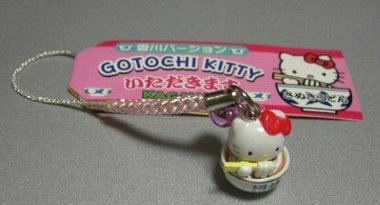 ご当地キティの根付「香川限定 讃岐うどんキティ」どんぶりの中に入って食べてるキティ。讃岐うどん食べたいな~。