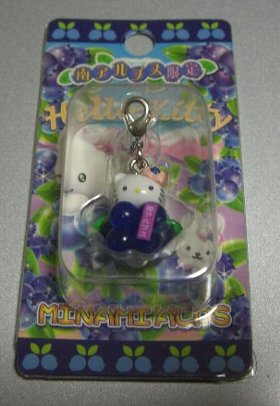 ご当地キティのファスナーマスコット「南アルプス限定 ブルーベリーキティ」リボンがすずらんになっていて、ブルーベリー色のストーンも付いててかわいい。