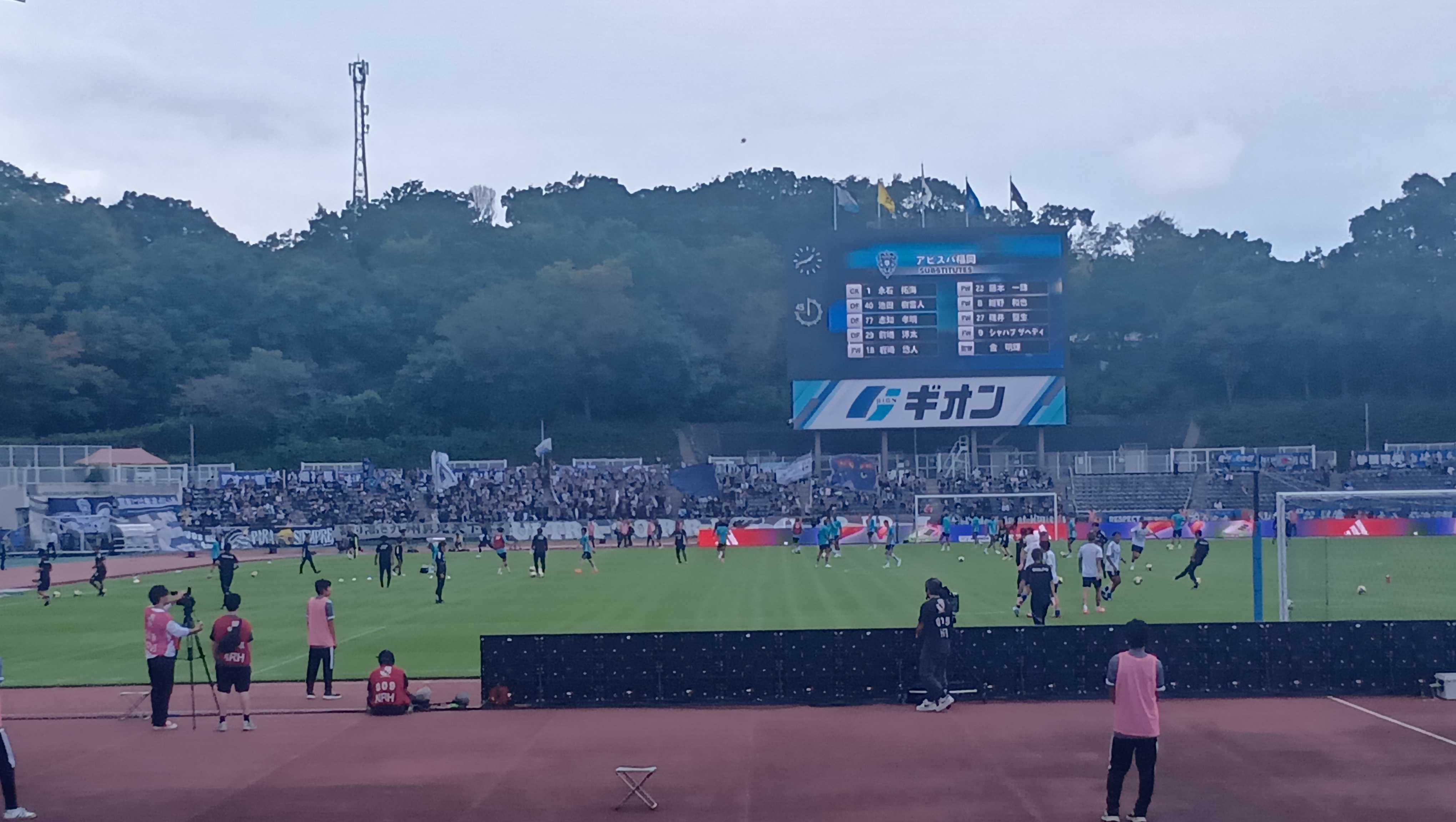 で、選手紹介📺️前から町田の選手呼ばれた後の「マチダ!!」コールやってみたかったので、それだけで自分は楽しい😆周りの小さい子も大きな声で選手呼んでてほっこりしました✨️福岡側の応援も熱気ありました🔥そして試合開始……!!