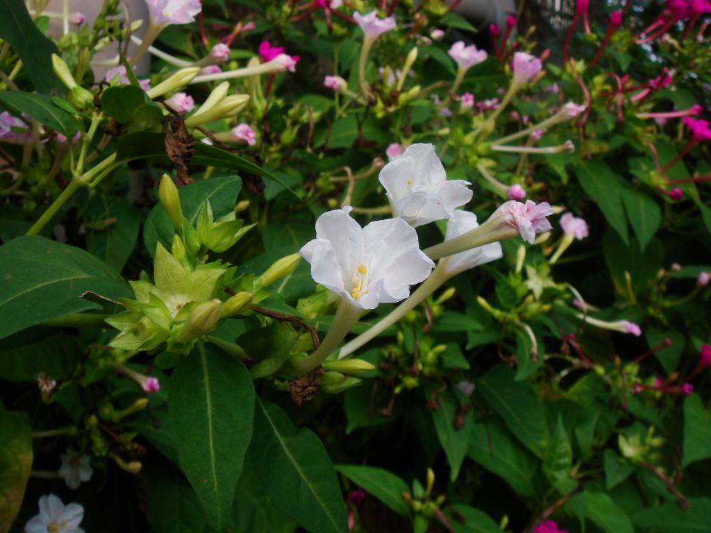 遅くなりましたが オシロイバナです。夕化粧っても言いますが、夕化粧はアカネ科の別の花の方が有名です。近くに別の色のオシロイバナがあると何気に色が混じってて楽しいです。オシロイバナも夕化粧も オミズ関係?完全な夜型のお寝坊さんです。夕方割き始め 一晩経って お客さんが来ないときは 朝方おしべがくるくるっと丸まって、自家受粉します。4時08分 開きかけ、まだおきてません。
