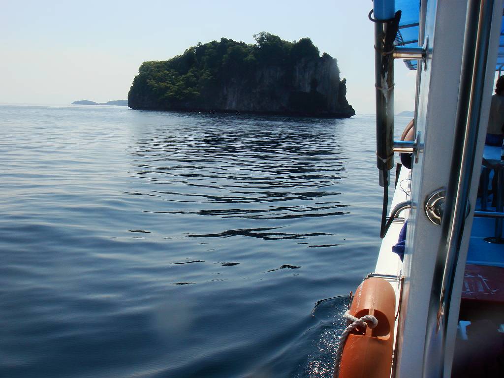 10/18ゴージャスな昨日とは うって変わって、ショップの車でなく、トゥクトゥクでお出迎え。トゥクトゥクって、幌付き小型トラックを改造した乗り合いタクシーのようなものだけど、乗り心地は 思ったほどは悪くなかったけど、まっ一回乗ったら十分って感じでした。 後で話し好きのオーストラリアの青年が乗ってきて、「皆どこから来たの?」というような事を聞いて、スイスやドイツ・アメリカ・デンマーク・カナダ、日本など 8人なのに結構世界中のあちこちから乗り合わせてることが判りました。 (それにしてもネイテブ英語圏の会話は 聞き取れん・・・・(^o^;) )港に着いてダイビングボートも乗り合いダイビングボートでした。20人位みっちり乗ってたので、少しつ~か、かなり狭い感じかな?昨日が豪華すぎたんで・・・これが普通かもしれませんが。今日はプーケット島の東側のシャークポイント。一本目 沈船 レックダイビングは 好きな人は好きだけど どうやら私はあんまり好きでないみたい。2本目 シャークポイント レオパルドシャーク 想像してたより大きかったっす3~4mはあったなぁ。でかっ。 ここはカメラ持って入りたかったぁ・・・。3本目 ドゥクマイ島 インストラクタの森さんのアドバイスのおかげで、ようやくカメラハウジングが曇らず復調。でも島が陰になって 全体が暗い画像で残念。オニカサゴ 正面ウミウシと卵ん・・・海中では タイに来たぞぉって写真は撮れなかったす。しくしく。だんだん ちっちゃく遠ざかる ドゥクマイ島これで ダイビングは終了です。