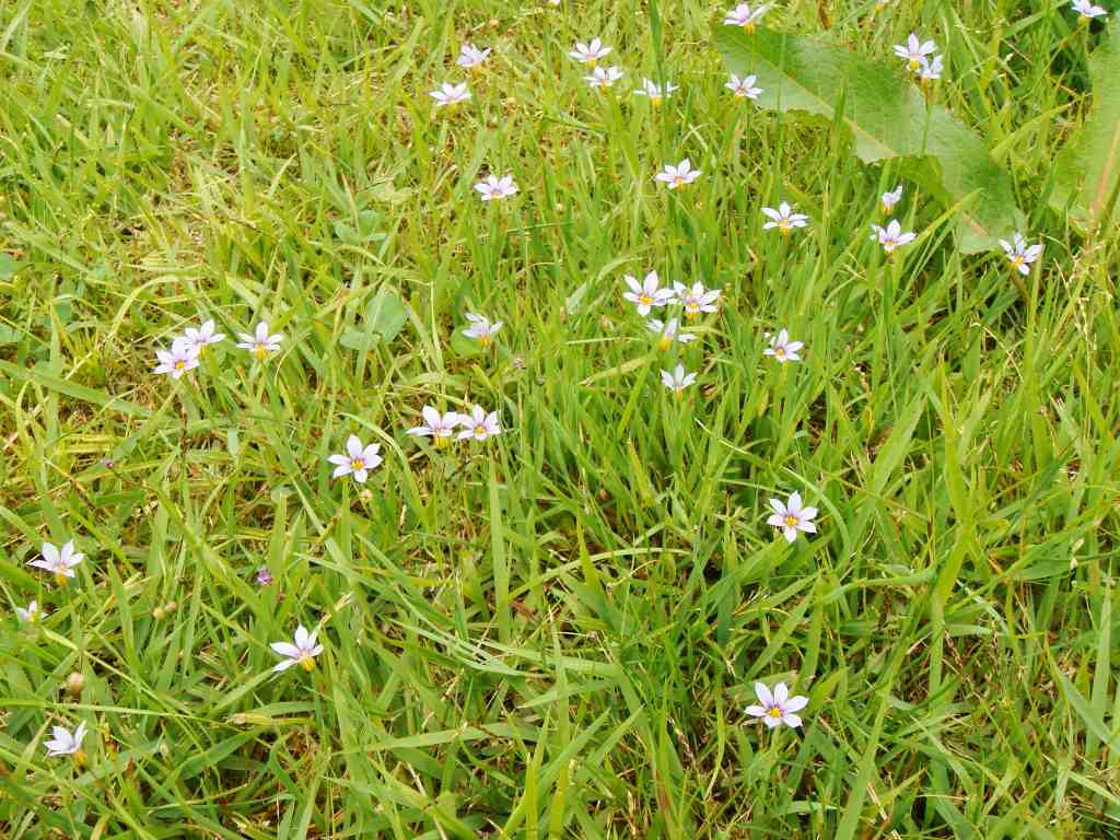 お気に入りの野原からおよよっ野原一面 ニワセキショウでした。花のつけ根にぼんぼりが・・・埋もれるようにしてトキワハゼが咲いてました。