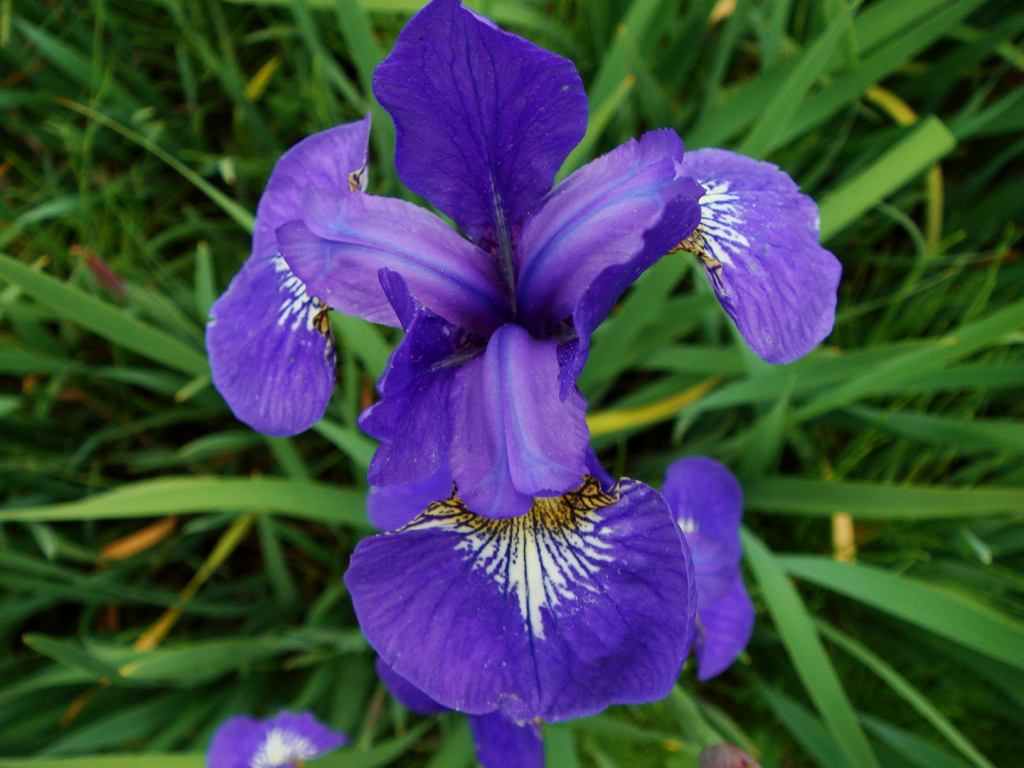 意外と 知られてないかな~あやめのおしべは画面中央の 真中の花弁の花びらの真裏にあるんですよ~。これは キショウブあやめも おんなじ、横から見ると こんなの花を訪れる虫さんの気付かないうちに背中にこっそりおみやげをくれます。