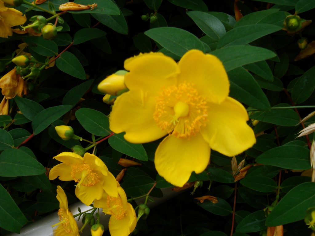 これはキンシバイ金糸梅かな? あちこちでたくさん咲き始めました。こちらはビヨウヤナギ未央柳・美容柳どこかの毛の長かった美女 楊貴妃にちなんでつけられたとか・・・。この花もあちこちで見かけます。梅だったり柳だったりしますが、実体はオトギリソウです。