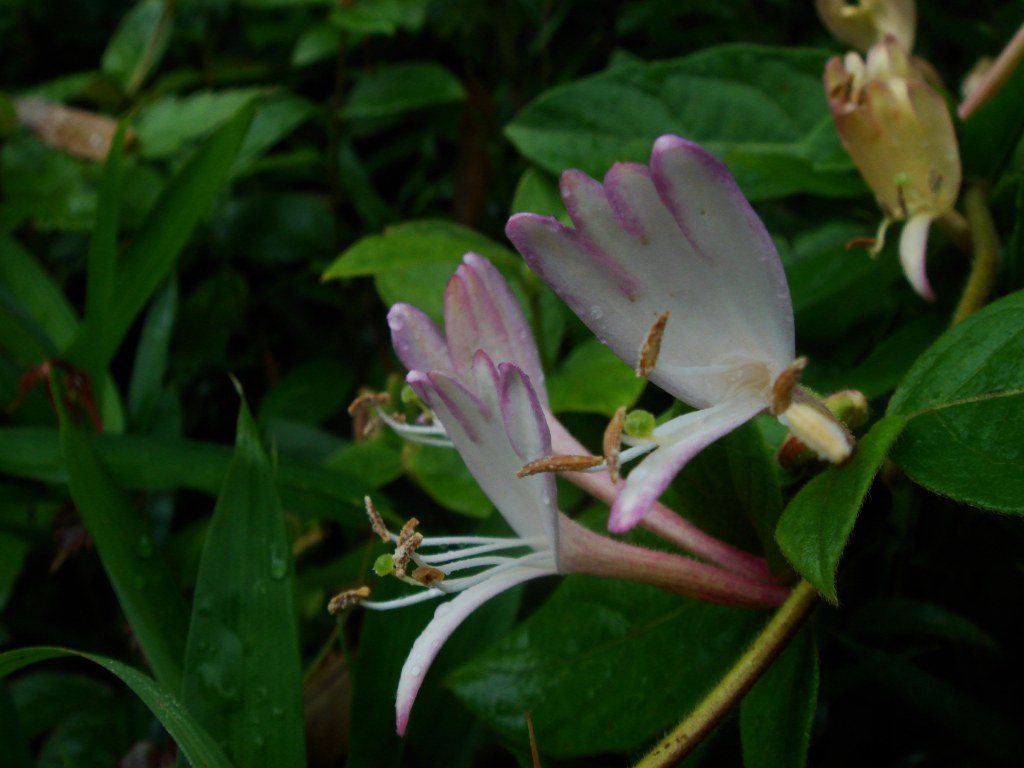 この花の蜜はおいしいとのことですが、まだ吸ったことはありません。(^_^;)ヾ雨のせいか強い芳香がありました。夜に強く香るとのこと。これもスイカズラ科スイカズラ属。ニンドウ、キンギンカとも呼ばれてるようです。万騎が原こども自然公園の近所の藪にて