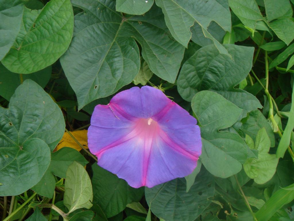 越冬アサガオで以前紹介した上白根の交差点で、もうアサガオが咲いてました。(^_^;)ヾ上はたぶん混血種で下がマルバアサガオ・・・ 普通のアサガオの葉っぱと形が違います。これは ひょっとしてノウゼンカズラ?ん・・・・ここは異空間だなぁ。(^_^;)ヾ