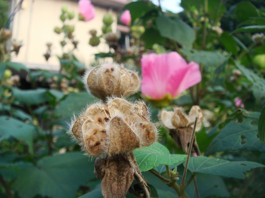 こないだ 芙蓉の種を初めて見ました。結構 おもしろい形をしてます。この種は ひっつき虫でしょうか?岸根公園近くにて