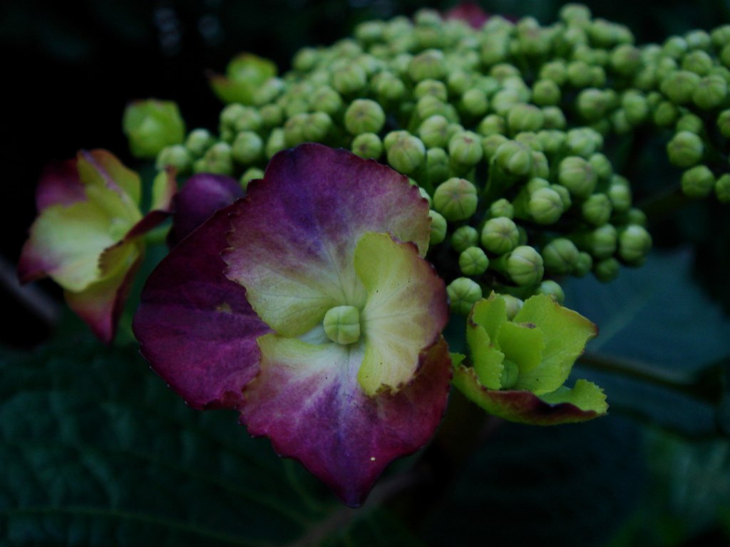 今週の水曜の晩に蛍を見に 四季の森公園へ行って来ました。・・・でもフラレちゃったす。 雨と蛍に・・・。帰り際ノルマどっかと渡され、会社出れたのが9時すぎ、公園へ着いたら10時を回ってました。公園に着く直前に雨に降られて ずぶ濡れに。入り口に数人たむろしてただけで、ひとっこ一人いない、真っ暗な深夜の公園を徘徊するのは不気味でした。。・・・いや、はたから見たら私が不気味か? (^_^;)ヾ 結局蛍も見つからず、盛大な蛙の合唱を聞いて帰ってきました。 む~、もう2時間早ければ・・・・。公園北口入り口のちょうちんも10時には消灯でした。公園の外で偶然見つけたホタルブクロ下から見上げて紫陽花に隠れるように咲いてました。