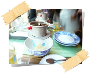 ベトナム・カフェでベトナムコーヒーを飲むのに失敗しちゃった飲み方を知らなかったのよね~。こんな容器で出てきます。耐熱グラスの下にはコンデンスミルクがたっぷり入ってます。お湯を入れて、コーヒーが落ちてくるのを待ちます。そして混ぜて飲むのですが・・・・。全部混ぜてはいけません!!!コレで失敗したんです。こんな大きくて甘いベトナムクレープと一緒に食べるのであま~~~くなりすぎて、途中でアイスクラッシュを持ってきてもらいました。飲むときはコンデンスミルクをかき混ぜる量を調整しながらでないととんでもない甘さになります。次からは少しずつ混ぜよう・・・。