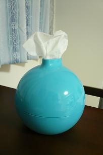 さてさて、これはなんでしょう?これは、ペーパーポットといってティッシュケースみたいな物なんですそしてこの中には芯も入っているのでトイレットペーパーをそのまま入れて使えるんです。普通、トイレットペーパーを部屋で使おうをしたら片方の手でペーパーを持ってグルグルと紙を取るか中の芯をワザワザ取っちゃって、中からヒュルル~って使うかのどちらかだけど、このペーパーポットを使えばそんな煩わしさから開放されちゃいますよあっ、もちろんこのポットは普通のティッシュペーパーも入れて使うことができます。私のがそぉ~です。