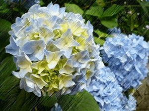 最近写真の画像処理にはまりまくりで今度はアニメまで作っちゃいましたまずは、あじさいの「雨降り」これはフリーソフトのPhotoScapeで作成しました。アニメは2枚写真を使ってます。1枚目は普通にテクスチャーのline_diagonalをつけて保存。2枚目はまず、鏡面にしてから反転させ、テクスチャーのline_diagonalをつけます。そして、反転→鏡面で元通りにして保存。それを使ってGIFアニメ作成すれば雨が降ってるようにみえます。なかなかいけてるっしょ2枚目のアニメは「波」です。これはPhotoFiltreのRefletを使いました。HPにダウンロードが独立してありました。これもフリーソフトです。まずは、PhotoScapeかPhotoFiltreで波を発生させたいところを切り取ります。私は小島の根元を切りました。そしてRefletソフトで波の数や早さなどを調整してアニメを作成します。たのしーぃ!こんなのばっかりしてるから夜更かしになるのよね。昨日も夜中3時になっちゃった