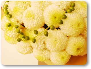 友達の結婚式にいってきましたベリーダンスで知り合った友達。そこのパパ、ママとも仲良しなんです。何度か家に泊まったりもしました。そして結婚式で踊って欲しいとリクエストがありあやしいキャンドルダンスと派手派手なウィングダンスを披露しちゃいました~。披露宴の係りの人達も驚き感動してくれてやったー!大成功!でした。披露宴の帰りにきれいなテーブル花をもらって部屋に飾るとすごく華やかになって香りもすごくいいんです!ふふふきれいでしょ~これは毬になってるので吊るす場所を探すのが大変でした。結局、間接照明のところにS字フックを掛けてそこにお花を吊るしました。ナイスアイデア!