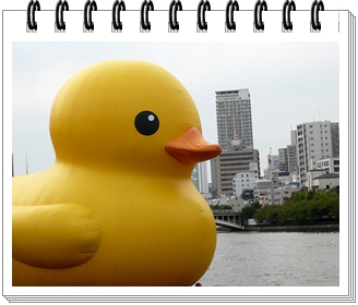 ではなくて、Rubber Duck Project 2009に出展されてるオランダ人アーチストのF・ホフマンによるあひるちゃんです。フランス、ベルギー、ブラジルを旅して日本初上陸!水都大阪のイベントで天満橋の八軒茶屋浜で見られます。でもこの子って、何をするでもなくただ、プカプカ浮かんでるだけなんだよねー。かわいいっ