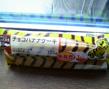 ローソンで発見しましまチョコバナナケーキ寅年なんで、こんなコーティングなのね。チョイ甘くて、バナナ途中棄権バナナの旅はつづく・・・・・