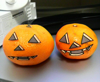 明日は、ハロウィン作ってみました。かぼちゃがなかったので、同じオレンジ色の”みかん”いい感じ