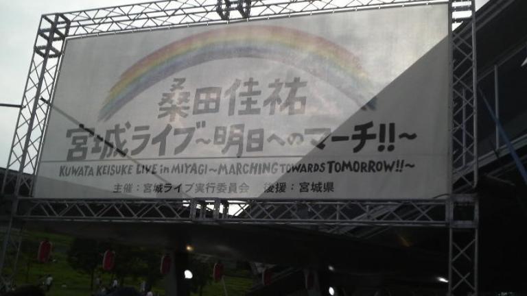 2011.9.10 宮城県仙台市にてありました我らが桑田圭祐 宮城ライブ~明日へのマーチ~へ参戦会場前ドコモ東北版うーーーーうれしかったです。ドコモの懸賞で当たったTシャツ、CD特典のタオル、風船この格好で参戦ですライブ終了後、会場からでると花火が・・・じーーーん がんばろ そんな気になりました。次は、いつだろう?? まちどうしい
