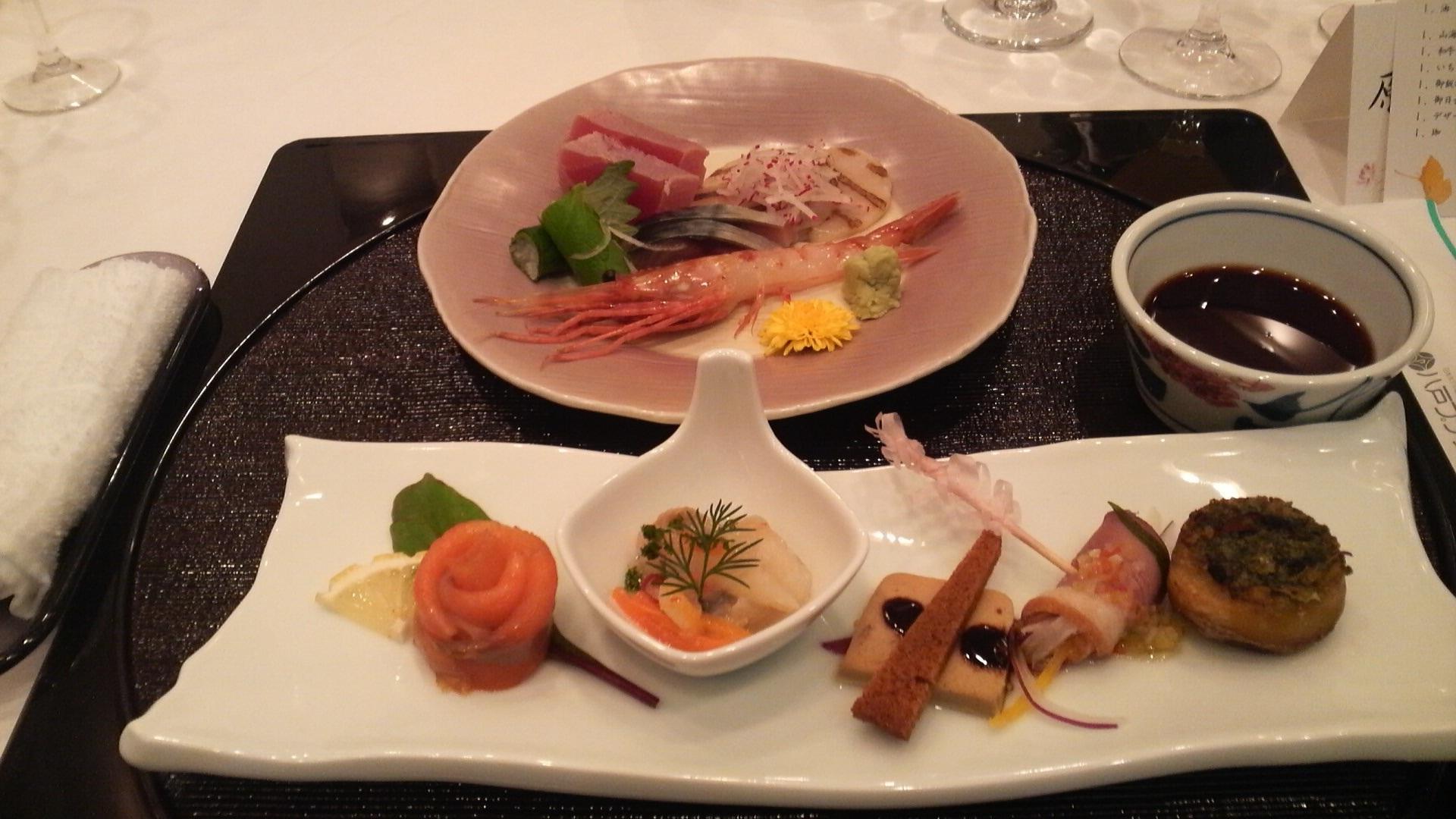 先日、大安の良き日年の離れたお友達の息子さんのお披露目お食事会へ行ってきました。周りの方々は、全員年上です。バナナと友達の二人のみが”若い”?らしく、ちょいうきぎみ今日は食事会、気にせず食べましょ、だって美味しいもの食べに来いて言ってくれたもん●アミューズグール 金山時フォアグラとミエルパン/ポテトエスカルゴ焼チーズ/サーモンのミニバラ造り/鯵 のエスカベッシュ/鴨スモークの野菜ロール●三陸魚貝お造り 湯霜マグロ/焼き霜帆立/牡丹海老/船冷鯖●サーモンとカニのワイン蒸しサフランソース●海老チリソース●油物 真鱈白子揚げ浸し/アスパラ/茗荷/万能葱/下し生姜/八方出汁●山海珍味壺蒸し●和牛ヒレ肉と岩手鴨グレービーソース野菜のドレッセ●デザート ポンムババロア イチゴのショートケーキ(ウエディングケーキのおすそ分け)●その他 いちご煮/畑シメジと海胆炊込み御飯/おそば/コーヒーバナナは、途中ギブアップいつも最後まで、食べきれたことがありません。コピーロボットがほしい(鼻をポチッとね)お幸せに美味しゅうございました久しぶりのナイフフォーク うれしかったな