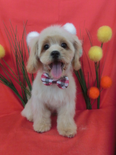 こんにちは。こちらのブログ、気がついたら半年更新してなかった!!その間に我が家にワンコがやってきました。ペキニーズとトイプーのミックス犬で名前はクレマといいます。6月生まれでまだ4ヶ月です。7月に何気なく立ち寄ったペットショップで、一目見て家族全員一致で気に入ってしまいました~トイプーは頭がよくてしつけもしやすいとか聞いてたんだけど、トイレは未だにトレーの上でしない時もあるし、何だか覚えが悪い!?と思ったりしますが、かわいいからいっか~とすでに飼い主バカ丸出しです最近は秋ということで地域のお祭りや文化祭シーズンで週末は何かと忙しいです。
