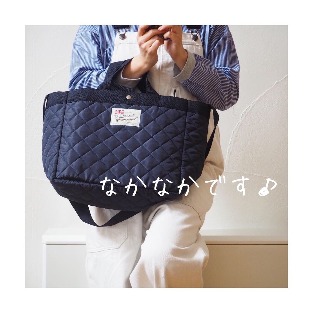今まで、ムック本のバッグとかあまり興味無かったんです。でも、ちょっと買ってみたいな。と思えるものがあって・・・ポチってみました。 weather traditionalwearのキルティングバッグ。これは・・・なかなか良かったです。内布ありの内ポケットあり。縫い代はパイピング始末してあったのですぐにほつれる事もなさそう。持ち手とショルダーの紐は少しチープだけどまあ、ね。ショルダーの長さも調節×なので私は使わないかな。仕事のサブバッグとして使い倒そうと思います!Traditional Weatherwear 2020-2021 Autumn & Winter