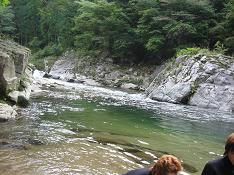 根羽村の清流。根羽村の鮎漁のひとつで、『がり』があります。いわゆる、ひっかけ針による漁ですが、鮎の友釣りが終わった後から、鮎が川落ちするまでに行われます。「がり」の道具。ウェットスーツを着て、岩の下に居る鮎を引っ掛けるのですが、ずいぶんと水温が低くなって、寒そうでした。σ(・_・)は泳ぎが苦手なので、見学だけです。いい親父たちが、水に浮かびながら、鮎を探しています。先々週の雨(ゴルフをキャンセルした)のため、だいぶん鮎が居なくなってしまったようです。鮎の動きを抑えるため、網を張りましたが、なかなか(^_^;)当日の釣果は10匹でした。