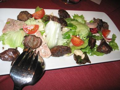 『鴨の砂肝とパテ』今回は食べ物も充実していました。前回は、ワインにお金がかかり過ぎたのでしょう(^^ゞ飲み物のシメには2種類が。ひとつは白ワインで、もうひとつは焼酎。『ピースポーター・ミヒェルスベルク・アウスレーゼ』2006原産国:ドイツ収穫を遅らせ、良質の房のみで作られたワインです。甘みもあり、非常にフルーティーなワインでした。最後は『六地蔵の夜仕事』原産地:鹿児島県薩摩半島午前中に掘った芋を直ちにふかし、仕込んで発酵させ、さらに日本で唯一の錫製の蒸留器で蒸留した芋焼酎。まさに、芋でした。『ティラミス』ここのスイーツはいつも美味しいです(*^。^*)『ワインたち』左から井筒、マコン・ブラン・メラージュ、ピースポーター。今回、紹介したワインたちのほかに、赤と白の2種類の秘密のワインを頂きました。まだ、言ってはいけないので書き込みませんが、これも美味しかったですよ。アーー、言いたい(^^ゞ画像の食べ物は4人前です(スイーツ以外)