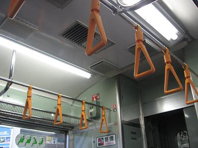 諏訪へ行くために電車に乗ったのですが、頭上に見慣れぬものが・・・最近は、こうなっているの?と、思って周りを観たら、他は昔ながらの白い輪っかが(^^ゞ