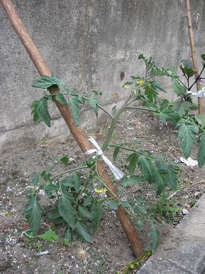 今年、勝手にミニトマトを植えました。そろそろ、草でもとろうと思っていたら、沿い棒が付けられていました(*^。^*)誰だろう?ナスにはアブちゃんとダニちゃんが・・・何をまくかな・・・