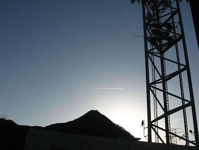 今朝の空。すがすがしい・・・んだけど。右下の奴が・・