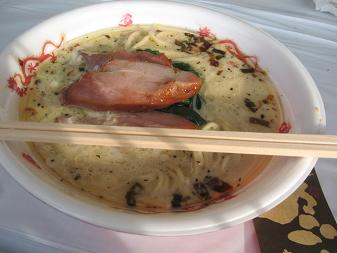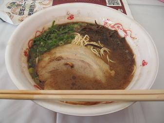 今日が最終日でした。今日は1時30分ごろ着。昨日より当日券売り場への列は長いですが、これは時間的なものかな?今日の目的は、『博多 新風』新風麺と信州麺友会。先ず、新風麺ゲッチュ(*^。^*)昨日は40分以上の待ちでしたが、今日はほとんど待ちなし。最後の日のためか、味が薄いような?続いて、信州麺友会のブースに行くと、何やら係員が慌てている。列に並ぶと「もう、ないかもしれません。現在調整中です」とのこと。そして、σ(・_・)の前で終わっちゃいました。残念。もともと説明済みで、待っていたのでしょうがないです。そこで、頂いたのが佐久市 『力丸』男の豚骨魚介味噌チャーシューは美味いです(*^。^*)大きいものをかぶりつきたいですね。美味しかったです。ただ、提供の回転が悪いですね。1回に茹でる麺が5~6食分で、5分くらい茹でるため、一人1分の勘定です。昨年までは松本のソバ祭りで3日連続でしたが、今年は長野でラーメン3連続でした。9月末の『信州麺バトル』10月の『ラーメンファンタジスタ』11月の『信州ラーメン博』堪能しました(*^。^*)