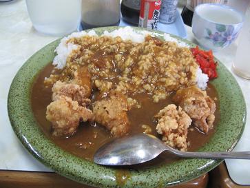 松本屋『唐揚げカレー』上松町への出張時の昼食で。結構ボリュームあります(*^。^*)大盛を頼んだ人は、申し訳なく、残すほどでした(^^ゞ唐揚げは・・・ですが、カレーはグーですね。
