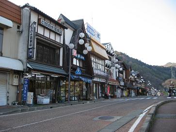 『木曽福島駅』前です。観光地らしく、お土産屋や旅館や飲食店があります。でも、その裏側は崖です。なぜか、『天空の城 ラピュタ』のパズーの親方の家の裏を思い出しました。