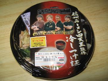『冷しつけ麺』信州ラーメン四天王監修 498円コンビニで販売されています。麺は、ほぐし用のレモン水ではほぐせません(^^ゞつけダレは、美味しいです。でも、麺がねーー・・・今まで、このコンビニのシリーズは、結構気に入っていたのですが、少し残念。
