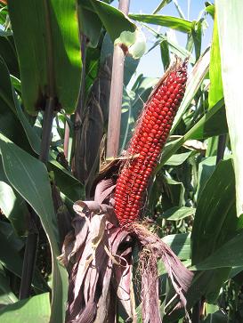 紫色のトウモロコシです。ポップコーンじゃ、ないですよ。食べると、肝臓にもいいそうです。といっても、牛にです。これは飼料用のトウモロコシなのです。しかし、肝臓にいいって・・・